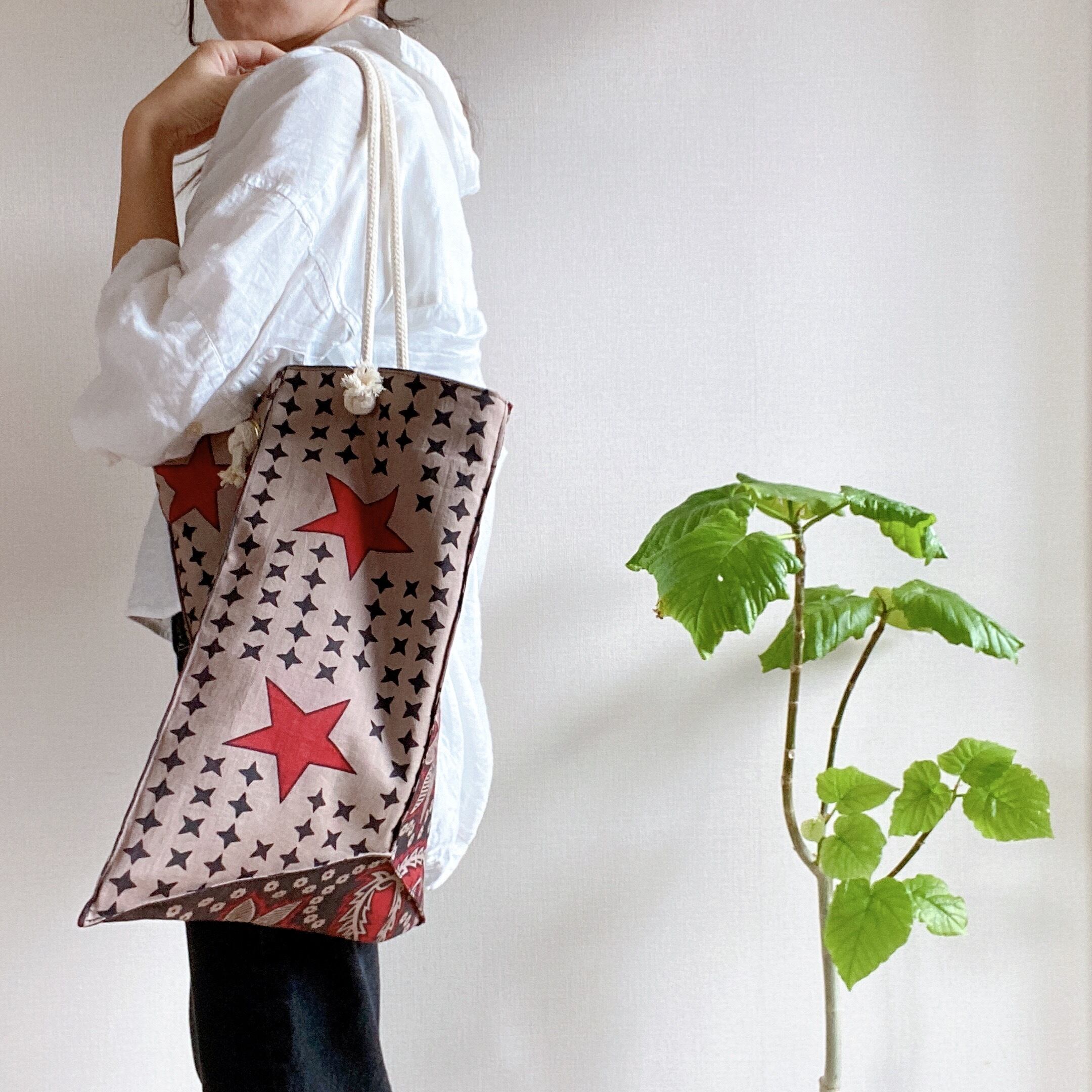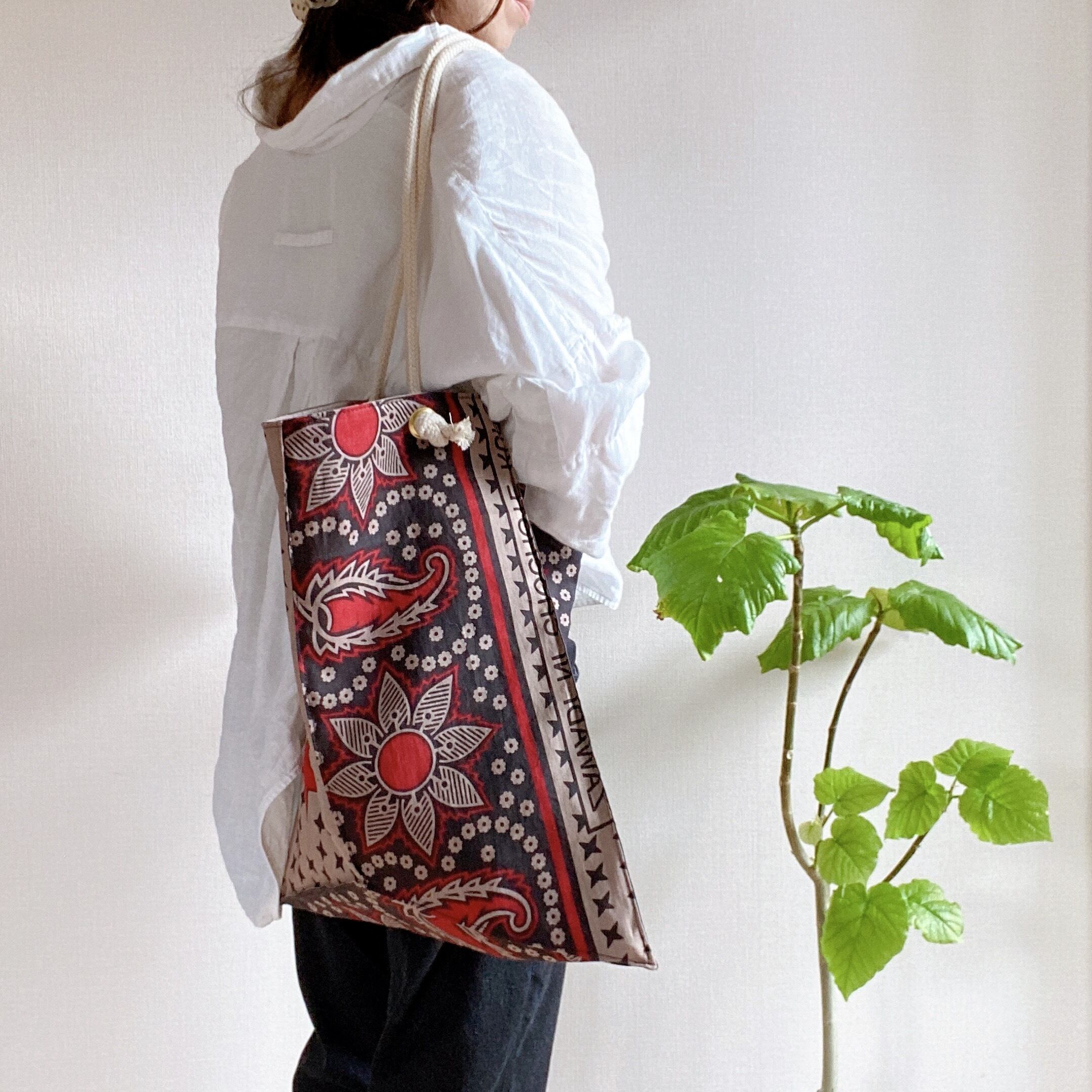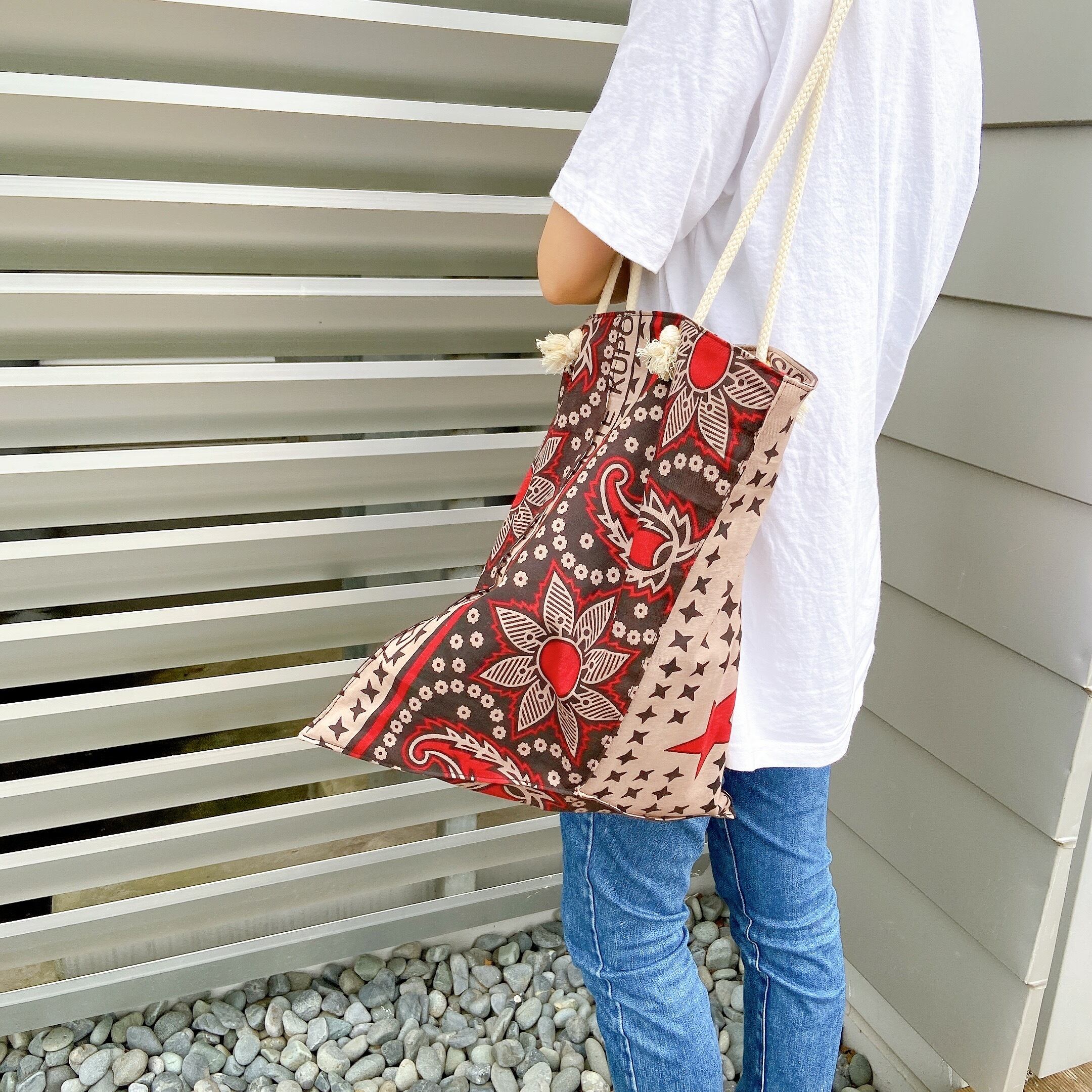 アフリカ布のカンガと呼ばれる生地を使用して面白おかしく理解不能な変形トートを作りました。